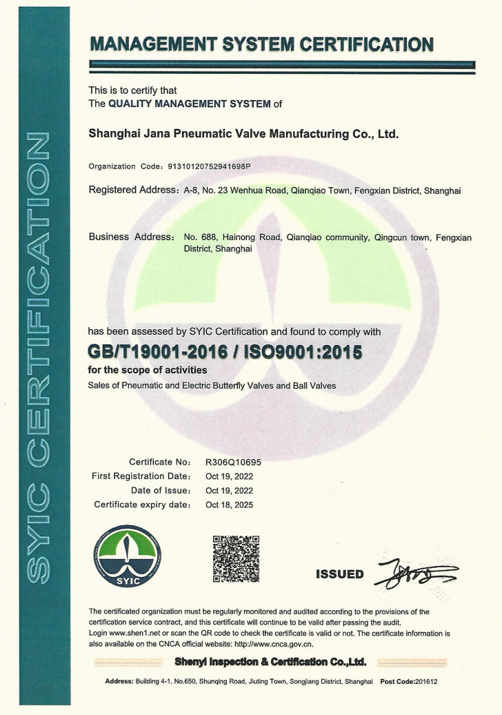 Shanghai Jana pneumatic valve manufacturing Co., Ltd